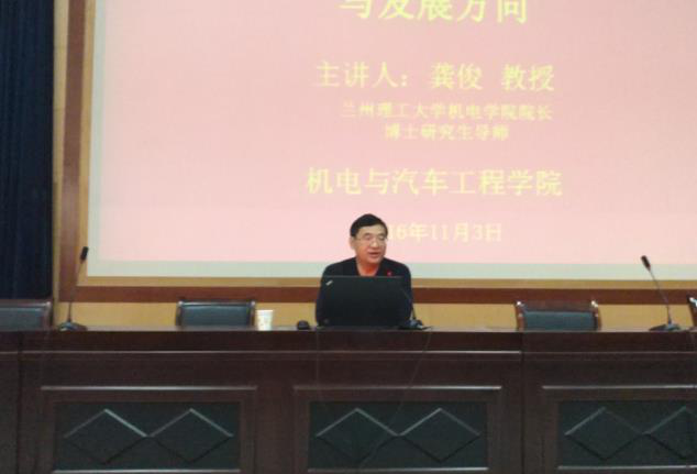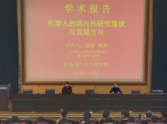 2016年11月3日下午,应学校科研处和437必赢会员中心邀请,兰州理工大学机电工程学院院长、博士研究生导师龚俊教授来校,在二号报告厅作了题为《机器人的国内外研究现状与发展方向》的学术报告。