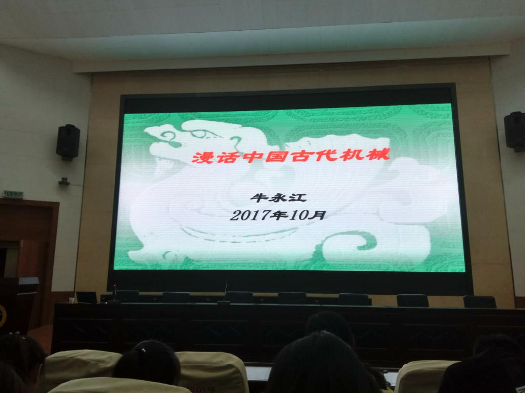 报告会上,牛永江教授主要围绕机械的定义及来源、中国古代机械发展概况、中国古代铸造技术与青铜器等三个方面内容对中国古代机械科学的灿烂辉煌,对人类文明进步做出的卓越贡献进行了系统阐述。