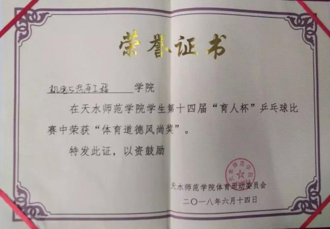 经过两天的紧张比赛,6月12日晚“育人杯”乒乓球比赛圆满结束,437必赢会员中心在学院第十四届“育人杯”乒乓球比赛中荣获“体育道德风尚奖”,祝贺437必赢会员中心选手取得了优异的成绩,希望同学们在今后的日常生活中能积极参加体育锻炼,增强体质!
