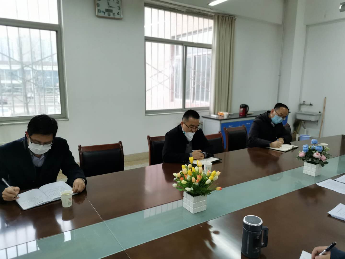 最后,就如何做好新学期及今后工作,王文东提出了七点要求:一是要按照党委要求持续做好疫情防控工作,严格落实网格化管理,做好对师生的宣传教育;二是从即日起,要求行政管理及服务人员正常上下班,为避免人员聚集,人员密集办公室实行错时轮流上下班与网上办公相结合的方式办公;三是持续做好线上教学工作,党政班子齐抓共管,做好监控和管理,确保线上教学质量;四是根据学校开学预案,立足学院实际,做细做实学院开学学生工作预案,克服疫情防控影响,深入推进学生就业工作;五是在做好支部标准化建设工作的基础上,结合专业特点,努力打造出学院党建品牌;六是班子成员团结协作,在广泛深入调研的基础上,结合“中国教育现代化2035”“中国制造2025”、人工智能与智能制造等,共同谋划好学院2020年度工作计划和“十四五”发展规划,在教学改革创新方面上多下功夫,切实做到高起点谋划、高标准要求、高质量推进。七是要挖掘一切有利因素,加大高层次人才引进力度,改善师资队伍数量和结构,努力提高学院的核心竞争力。