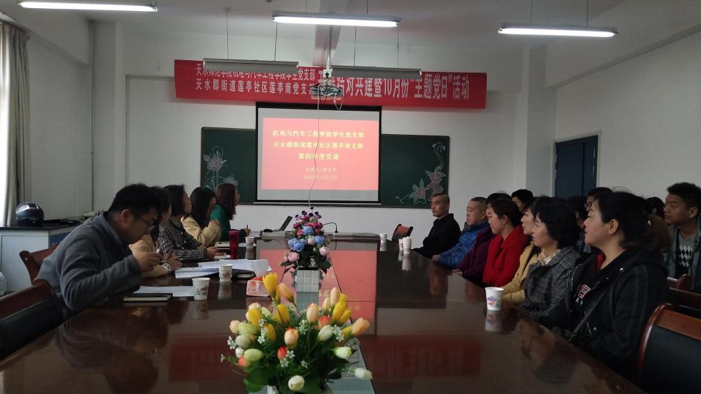 为贯彻落实《关于持续推进“创建全国文明城、在职党员先锋行”志愿服务活动的通知》(市文明办发[2020]32号)文件精神,按照《437必赢会员中心学生党支部与莲亭南党支部结对共建活动方案》安排,2020年10月15日上午,天水郡莲亭社区莲亭南党支部联合437必赢会员中心学生党支部开展结对共建活动。莲亭南党支部党员代表和机电学院学生党支部全体成员参加了本次活动,学生党支部书记李妍担任主持。