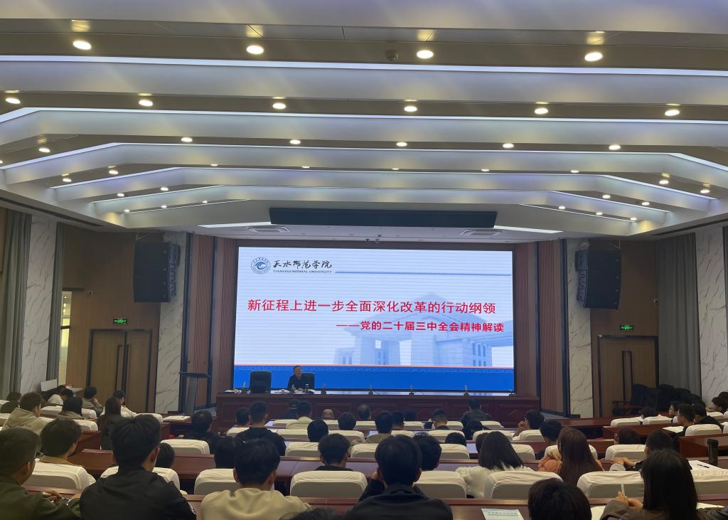 王旭林聚焦党的二十届三中全会精神,从深刻认识党的二十届三中全会的主题和意义、深入学习领会习近平总书记视察甘肃重要讲话重要指示精神、全面准确理解《中共中央关于进一步全面深化改革、推进中国式现代化的决定》提出的进一步全面深化改革重大举措三个方面作了详细阐述。通过全面、深入、系统的分析,进一步深化了与会人员对党的二十届三中全会精神的理解,为推动学院高质量发展提供了实践指导。
