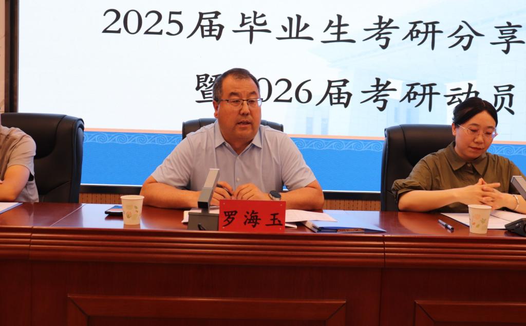 最后,罗海玉做总结发言,他再次强调了考研的重要性。他讲到,考研是一场需要精心筹备的战役,明确方向、掌握方法、合理规划时间是成功的关键。考研也是一场自我超越的旅途,今天的活动是同学们这段旅程的起点,他希望同学们以考研成功的学长学姐为榜样,以饱满的热情、坚定的信念、勇往直前,在考研的道路上不断努力,最终实现自己的梦想。同时,也向学生承诺,学院会对考研学生加强指导和服务,创造更好的学习条件和环境。